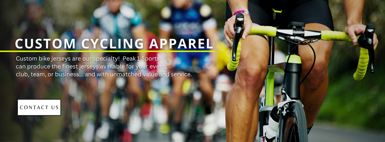 Peak 1 Sports specializes in custom cycling jerseys for events, teams, and clubs. Whether it is 5 jerseys for your weekend riding buddies, 1,000 jerseys for a fundraising event or anything in between, we’ve got your covered. Give your group an identity with a look that stands out from the crowd.